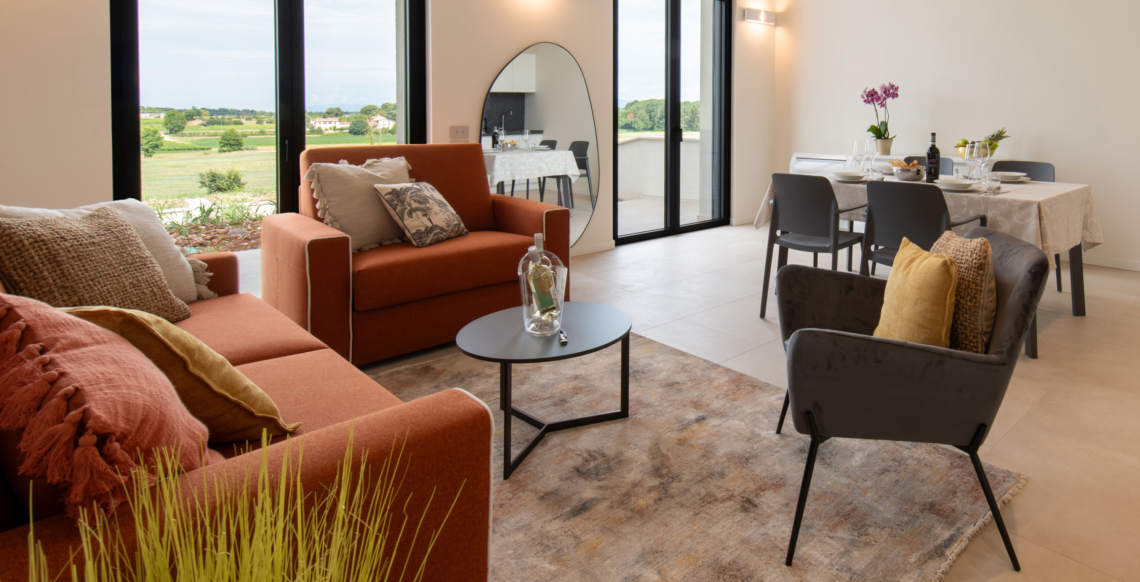 Gli appartamenti della Barchessa sono perfetti per coppie o famiglie fino a 4 persone. Caratterizzati da un design elegante e arioso, offrono una cucina completamente attrezzata, due bagni, una camera matrimoniale e un comodo salotto. I soffitti in legno aggiungono un tocco di calore, mentre il salottino all’aperto e il giardino esclusivo con vista sulla piscina assicurano momenti di totale relax.